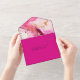 This all in one wedding invitation card is special. You get your invitation card and the RSVP card all in one. You can customise the romantic and elegant wedding invitation card with your Intro, names, occasion, date, adress, rsvp, meals and other background colours to your preferations. Even the image is changeable. It shows a harmonious blend of pink and burgundy tones and it has fitting white and burgundy typography. It is a marble swirl pattern in pink, white, burgundy hues. You can elegant seal and send this trifolded budget wedding invitation. Send the tear off RSVP Postcard back to the sender. Make this special design yours and feel like the prince and princess on your future wedding. Hobinishop