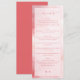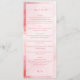 This elegant wedding menu features a vertical layout with a soft pink and coral gradient background, creating a warm and inviting atmosphere. The design highlights the word "menu" in an elegant cursive script at the top, followed by sections for Starters, Salad, Main Course, and Dessert, each presented in clean serif fonts that enhance readability. The simple sans-serif typography lists dishes clearly, maintaining a refined and sophisticated feel. With minimal decorative elements and ample negative space, this design exudes elegance and simplicity, perfect for a formal dining experience.