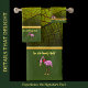 Personalise romantic modern gold foil with green texture.and image of a Pink Flamingos standing with a red bow tie and a green leaf