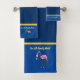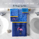Romantic Pink Flamingos with gold stripes blue Bath Towel Set