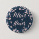 Maid Of Honour romantic floral wedding buttons with beautiful pink wreath and custom text, printed on blue background