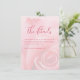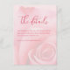 This wedding enclosure card features a soft, romantic design with a pastel pink background and large, delicate rose illustrations in the corners. The layout is centered and vertically aligned, emphasizing elegance and simplicity through ample negative space. Elegant script typography highlights "The details" at the top, while clean sans-serif text provides instructions for visiting a customizable website. The mood is graceful and anticipatory, perfect for formal events or weddings, blending floral motifs with modern minimalism to create a harmonious and sophisticated aesthetic.