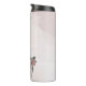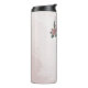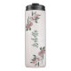 Unique thermal tumbler featuring romantic pink flowers and some beautiful green leaves.