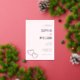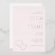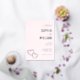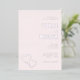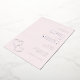 This wedding invitation features a soft pink background with a minimalist and modern design, creating an elegant and romantic atmosphere. The layout is centered with ample white space, enhancing readability and focus on the main content. Delicate silver or light gray typography complements the pale pink hue, while two outlined heart shapes add a subtle romantic motif at the bottom left corner. The customizable text fields allow for personalization of names, dates, and locations, making it perfect for formal occasions. The overall mood is serene and sophisticated, ideal for celebrating a special moment in style.
