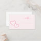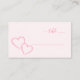 This wedding place card features a minimalist design with two overlapping pink hearts, creating a romantic and tender feel. The layout is clean and modern, with ample white space that highlights the delicate cursive typography for "table," adding an elegant touch. The soft pink color palette enhances the gentle aesthetic, making it perfect for intimate celebrations. Ideal for weddings or special occasions, this card combines simplicity with charm to set the mood for a memorable event.
