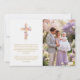 This invitation is born from a feeling of tenderness and devotion, designed to joyfully announce your baby's first sacrament through a romantic and ethereal aesthetic. The heart of the design is a beautifully crafted Christian floral cross, surrounded by soft watercolor-effect brushstrokes in lilac, pink, and lavender tones that evoke the light of spring. Thanks to this refined artistic finish, every botanical detail seems to meld into the paper, creating a sublime frame of peace and serenity. The ability to personalize the back with a family photograph and a special message transforms this piece into much more than an invitation; it is a testimony of faith and a photographic keepsake that your loved ones will cherish forever.