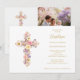 Romantic Pink Lilac Floral Cross Baptism Invitation