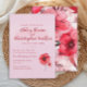 In the bottom corner, hand-painted watercolor flowers in shades of rose, coral, and berry bring a touch of delicate sophistication, balancing the layout without overwhelming it. The light linen texture background adds depth and warmth, making this invitation ideal for spring weddings, garden ceremonies, modern romantic themes, and soft pink wedding palettes.