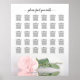 Romantic Pink Rose 30 Table Wedding Seating Chart
