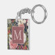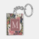 Romantic Pink Roses Flower Bouquet Monogram Key Ring