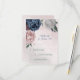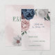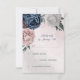 Beautiful botanical wedding response card featuring romantic pink, white and navy blue flowers with green leaves.