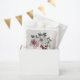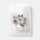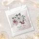 Beautiful botanical wedding favour bag featuring romantic pink, white and cinnamon rose/ chianti flowers with green leaves .