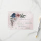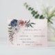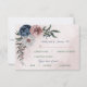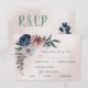 Beautiful botanical wedding response card with meal choice featuring romantic pink, white and navy blue flowers with green leaves.