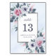 Romantic Pink White Watercolor Roses Wedding Blue Table Number