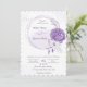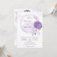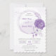 Romantic wedding invitation card featuring white and purple flowers on a pretty circles.