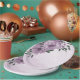 Unique wedding paper plate featuring romantic dusty purple flowers and green leaves.