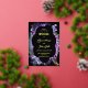The wedding card features a stunning purple floral design, beautifully complemented by a black oval shape border that adds an elegant touch. At the back, a lovely butterfly adds a whimsical element, symbolising the joy and transformation of love as the couple embarks on their new journey together.