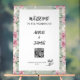 Welcome your guests with this stunning large-scale sign, featuring a delicate oink floral border. It's not just a decoration but a functional part of your wedding day. Includes a custom QR Code, easy for guests to have direct access to their seats, full personalised names, and a matching sign with our wedding suite collection.