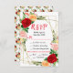 This fun and whimsical wedding rsvp enclosure card features watercolor red, pink and orange roses with foliage on a gold geometric frame. The text combines handwritten script and serif fonts for a stylish and modern look. This is perfect for a spring or summer rustic wedding.