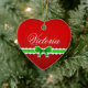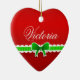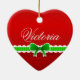 Romantic Red Christmas Design Cute Bow Custom Name Ceramic Tree Decoration