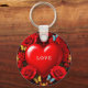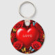 Romantic Red Heart Framed by Roses and Butterflies Key Ring