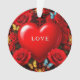 Romantic Red Heart Framed by Roses and Butterflies Ornament