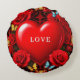 Romantic Red Heart Framed by Roses and Butterflies Round Cushion
