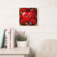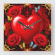 Romantic Red Heart Framed by Roses and Butterflies Square Wall Clock