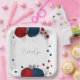 Romantic dark red & navy blue flowers with silver leaves botanical wedding paper plate.