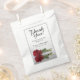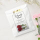 These beautiful wedding favour bags are a great way to thank your guests for being a part of your special day. The design features a single long stemmed red rose laying on its side and reflecting in a pool of water with ripples and waves. The caption reads: Thank you for celebrating with us. There is space for the names of the couple and the wedding date.