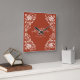 The "Mr & Mrs" wall clock design features a beautiful watercolor artwork of a white floral frame on a warm, earthy red background. The couple's last name and special date can be easily customised. This personalizable wall clock makes a wonderful wedding gift as it serves as a sentimental reminder of the couple's time together and is a practical, long-lasting addition to their new home.