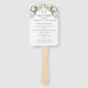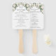 Keep your wedding guests cool and informed with our elegant wedding program hand fan! This beautiful accessory features a stunning design of delicate white roses on the front and back, perfectly complementing your special day. The front of the fan contains the order of ceremony, ensuring your guests can follow along seamlessly. At the top of the card is a unique personalised monogram of the Bride and Groom's initials, elegantly displayed inside a circle of leaves. And to make it truly unique, the back also features a charming list of your wedding party, introducing the special people who will stand by your side. This functional and fashionable wedding favour is sure to be a cherished keepsake for your loved ones for years to come.