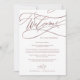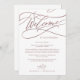 These romantic rose gold calligraphy welcome letter & itinerary cards are perfect for a simple wedding. The modern classic design features fancy swirls and whimsical flourishes with gorgeous elegant hand lettered faux rose gold foil typography. The front of the card features a welcome letter and the back of the card features the wedding itinerary. These notes are perfect for destination weddings and hotel guest welcome bags.
