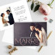 Announce your marriage with warmth and glamour using this romantic rose gold serif photo wedding announcement. Oversized metallic rose gold typography spells "Married" across your full-bleed photo, with names and established date elegantly displayed above. The back includes a second photo and a customisable letter about your private ceremony. Replace both photos and edit all text to create the perfect keepsake.