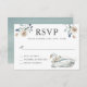 Watercolor roses in creamy off-white with blue-green leafy stems accent opposite corners in this elegant wedding RSVP card along with a graceful white swan. It coordinates with the Wedding Swans wedding invitation suite. Personalise the required response date shown in the design template with your required date.