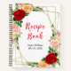 This beautiful and elegant recipe book features watercolor red, pink and orange roses with foliage on a gold geometric frame. The text combines handwritten script and serif fonts for a stylish and modern look. This makes a great wedding or bridal shower gift, a gift for someone special or for your own use in your kitchen.