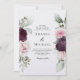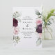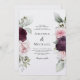Make a statement with this beautiful watercolor roses botanical wedding invitation that features floral borders on each side of the elegantly placed text. Colours include pale blush pink, deep burgundy red and plum mixed with ethereal greenery and tiny white accent flowers. Personalise the text template with your information. The back side of this invitation is a clean plain white. Other colours are available, or you can change the background colour to white or any colour of your choice.