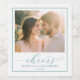 This wedding wine label features a romantic and intimate design with a rectangular layout, showcasing a tender photograph of two individuals set against a softly blurred outdoor background. The color palette includes warm earthy tones and soft pastels, complemented by a muted sage green border that frames the image beautifully. Elegant cursive typography highlights the celebratory sentiment, while clean sans-serif fonts provide customizable spaces for names and dates. The overall mood is one of warmth and affection, making it perfect for commemorating special moments like weddings or anniversaries.