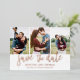 This minimal 3-photo save the date card features a beautiful free-spirited brush script in real foil (colour of your choice). Add an additional photo and details to the back