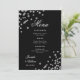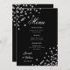 Matching products are available! This elegant wedding "Menu" card features a modern glitter confetti design, custom names, and date text. It is fully customisable and easy to use and personalise.