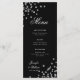 Matching products are available! This elegant wedding "Menu" card features a modern glitter confetti design, custom names, and date text. It is fully customisable and easy to use and personalise.