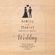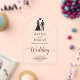 This elegant black-and-white arch acrylic wedding invitation is perfect for a modern wedding. The simple design features elegant black calligraphy and a bride and groom illustration on a clear transparent background. The invitation card includes the wedding details on the back instead of paying for a separate enclosure card.