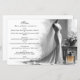 This elegant wedding menu card showcases a refined pencil sketch of a bridal gown on a mannequin, paired with antique florals and a classic perfume bottle subtly highlighted in soft blush pink. Perfect for sophisticated weddings with a romantic, vintage touch.
