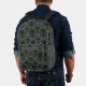 Dark Damask Pattern Backpack featuring skulls, blooming roses, and vintage Victorian flair. Perfect for Halloween or any occasion that calls for a beautiful touch of the macabre. Add your Initials.