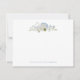 Elegant wedding thank you card, embellished with a stunning soft blue and white watercolor floral bouquet with hydrangea, delphinium and roses.