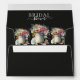 A stunning floral arrangement graces the front of the envelope, setting a beautiful tone.