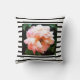 Romantic Spring Peach Peony on Black Stripes Cushion