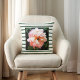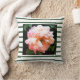 Romantic Spring Peach Peony on Green Stripes Cushion