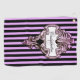 A bold pink and black striped background with a romantic steampunk goth feminine design which you can personalised with your name and initial or give as a gift.
