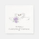 Embrace the beauty of love with these exquisite wedding paper napkins, showcasing a heartwarming scene of two swans nestled amongst soft purple flowers. The watercolor artistry brings a unique, gentle touch to the design, creating an atmosphere of romance and serenity for your wedding day. These napkins are ideal for enhancing the ambiance of your wedding feast, rehearsal dinner, or any event celebrating your union. The delicate floral accents and the iconic symbol of swans in love offer a classic yet fresh aesthetic that guests will adore.